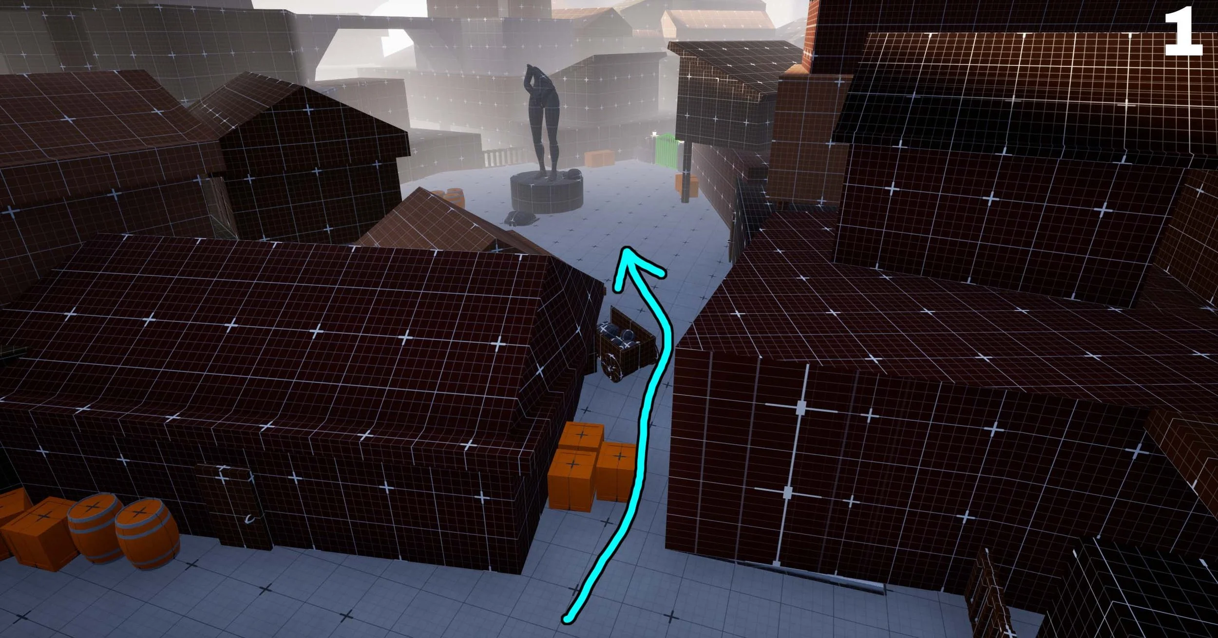 After creating my map and Miro board, my next step was to finalize the metrics for my level, such as door, wall, and stair dimensions. To do this, I created a metrics gym to help establish the measurements I would be using.