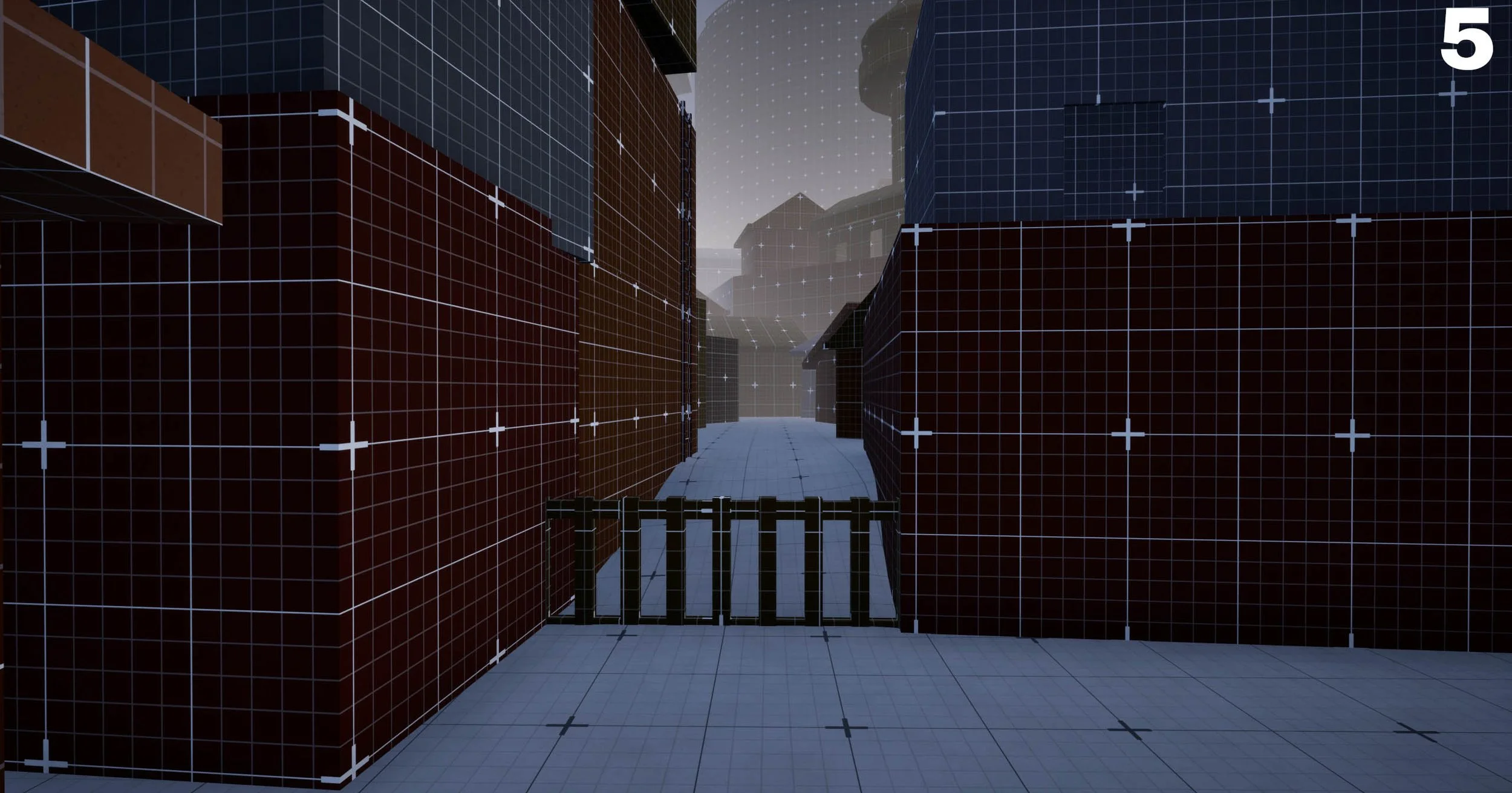 Fenced-off areas extend the village’s perceived scale without increasing gameplay scopeBuilding Layout
