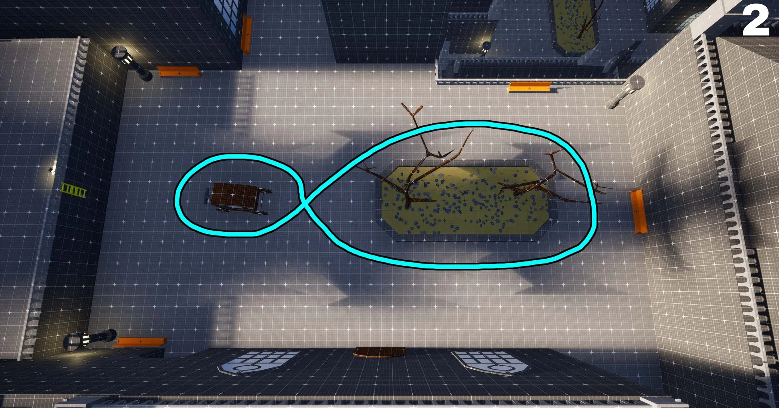 An overlook frames the level’s start, giving the player a clear sense of their progressFigure-Eights