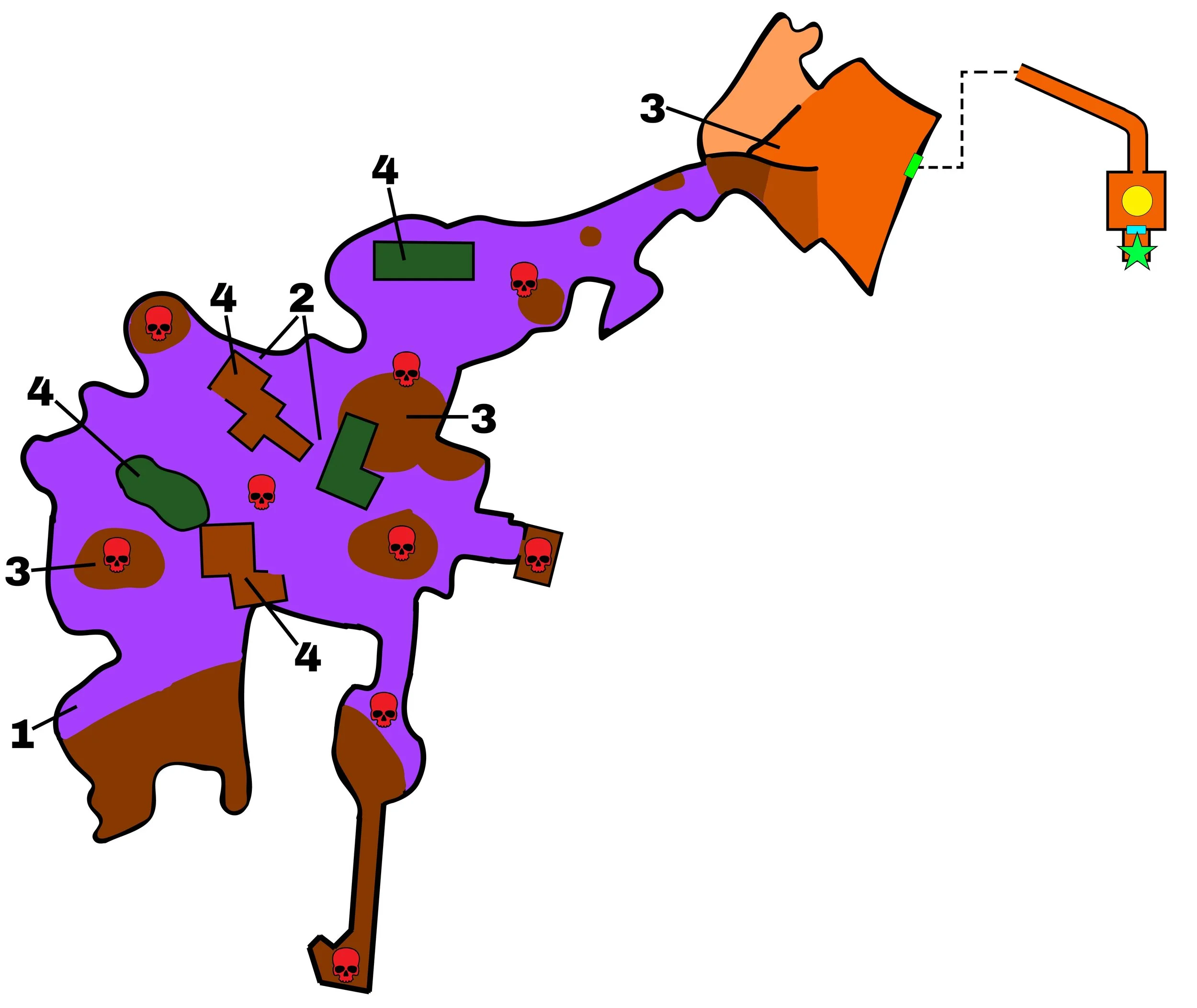 Widespread poison creates sustained pressure, forcing players to choose between rushing through and managing health or moving carefully to avoid buildupWide-Open Layout
