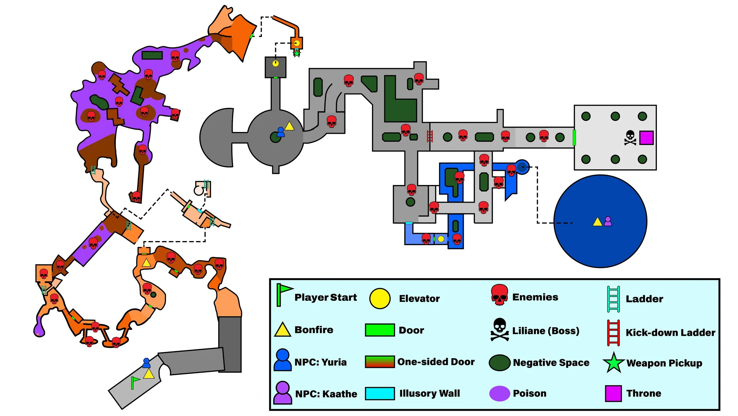 A shortcut door reconnects the critical path to a previous bonfire, rewarding progression and reducing backtrackingPoison Pools