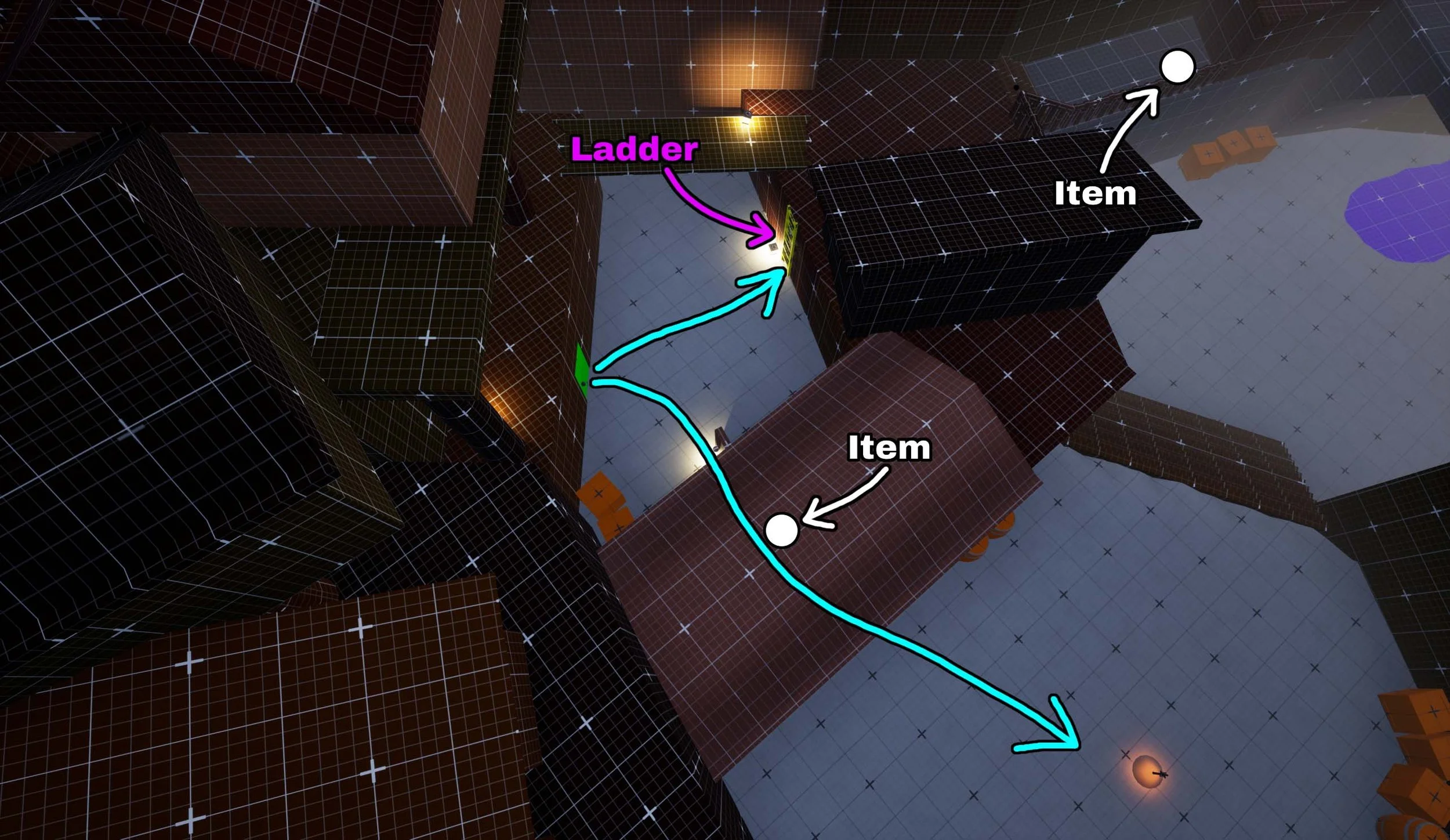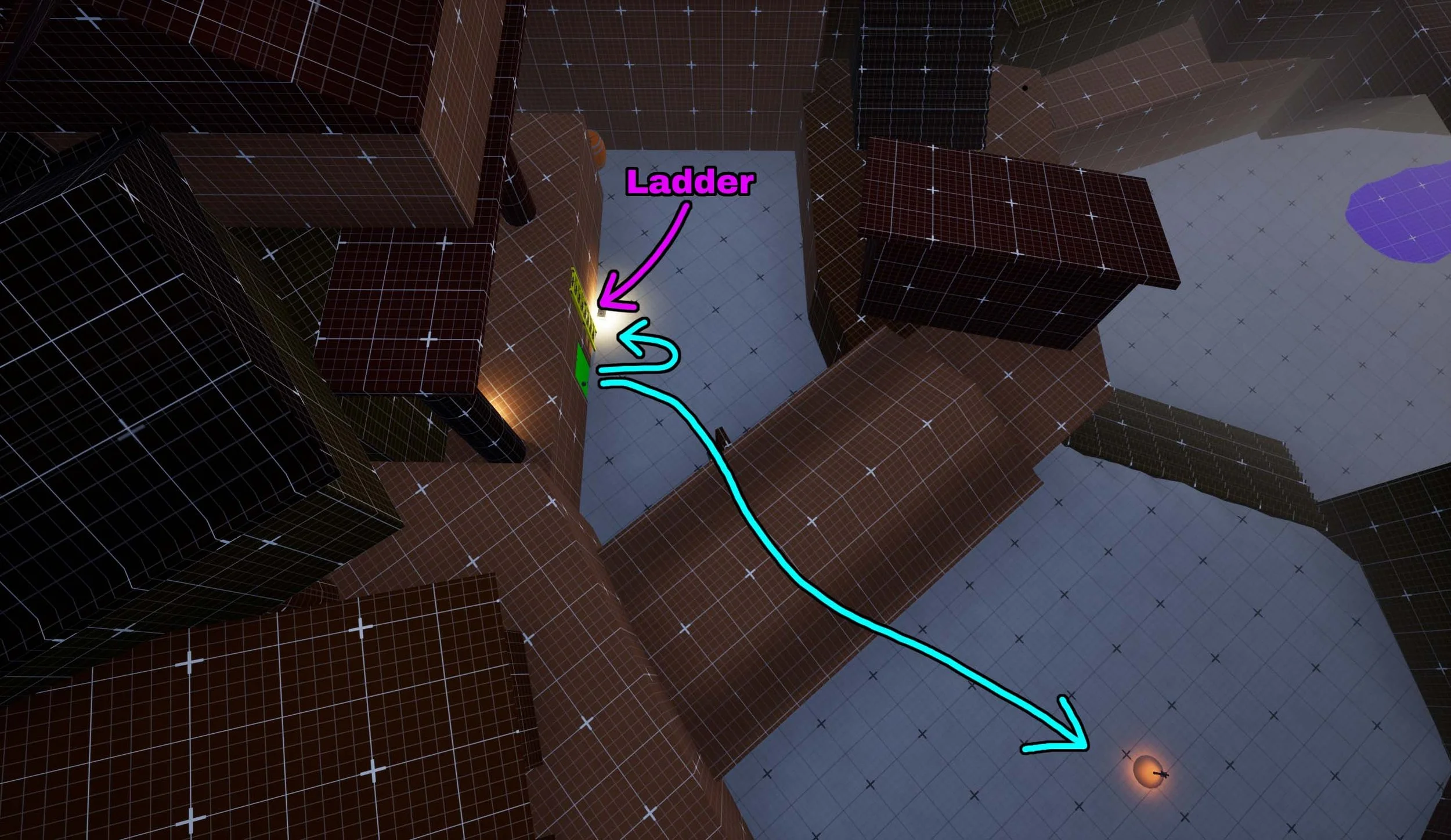 Exit view now reveals both the ladder and shortcut path, improving clarity of available routes