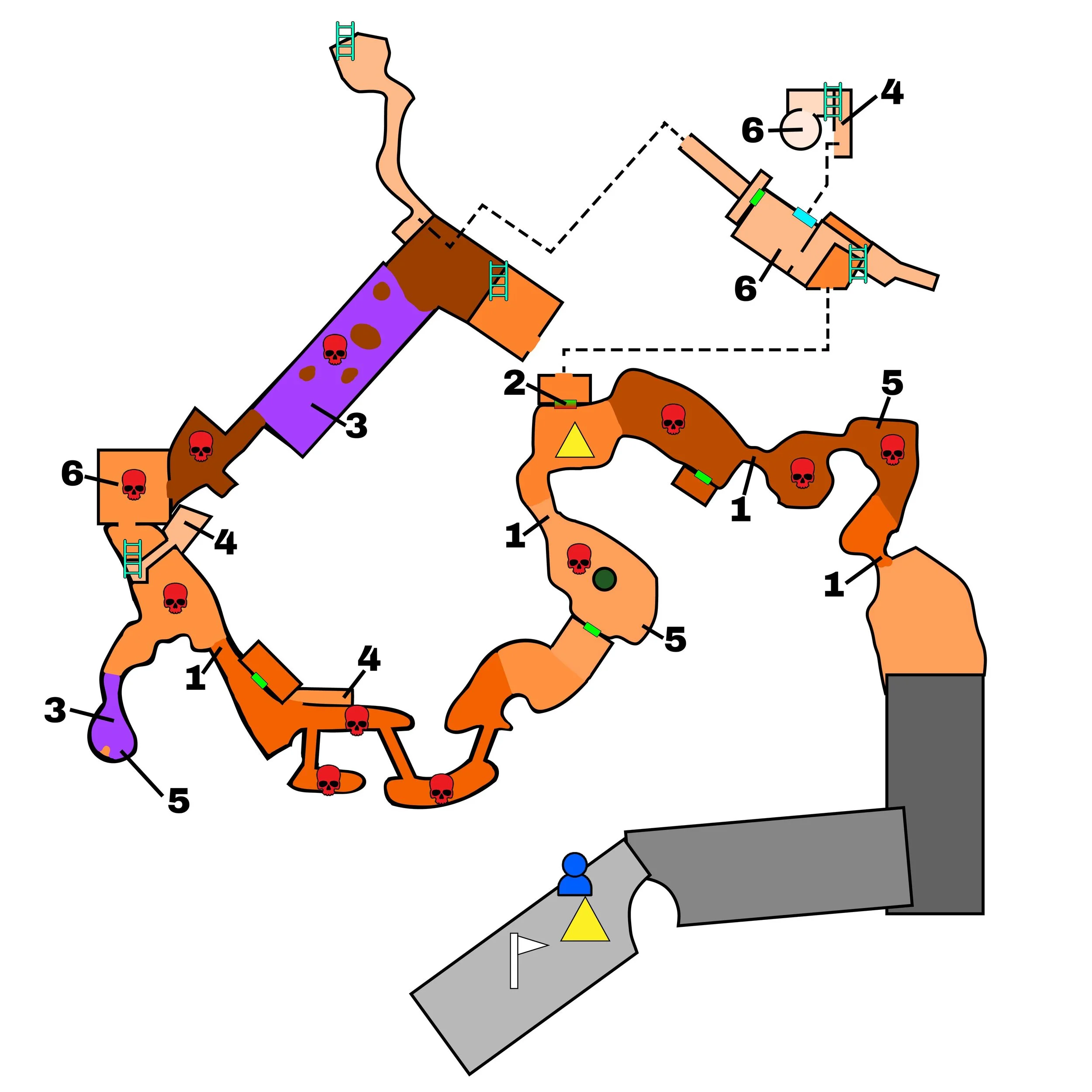 Widespread poison creates sustained pressure, forcing players to choose between rushing through and managing health or moving carefully to avoid buildupWide-Open Layout